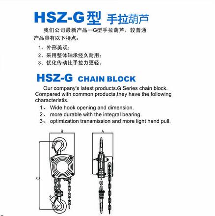 HSZ-G型手拉葫蘆,較普通產品有一下特點:外形美觀,采用整體軸承經久耐用,優化了傳動性能,拉力輕。